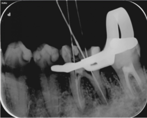 歯の根の治療中のレントゲン写真です。
