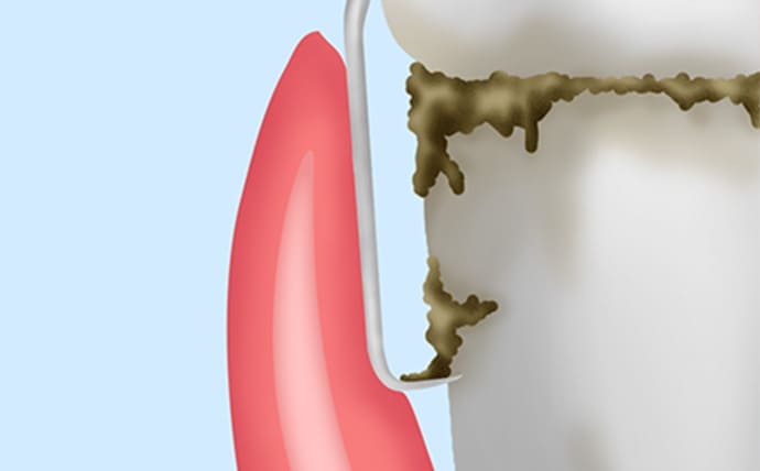 歯と歯ぐきの境目の溝(歯周ポケット)の深さを測定し、歯周病の進行度を確認します。