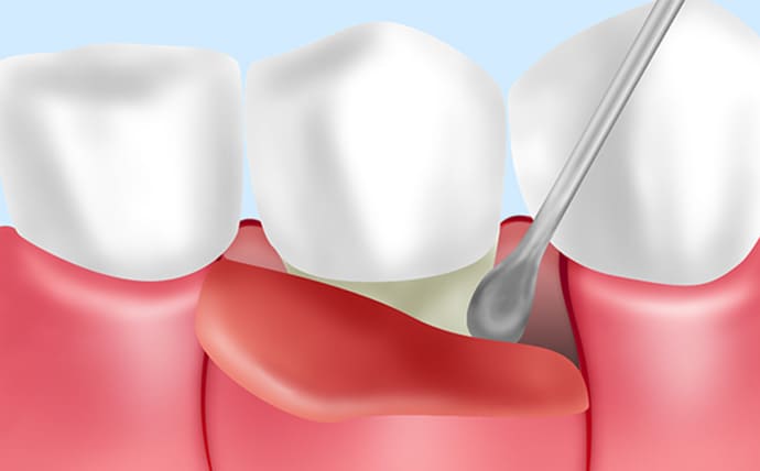 歯肉を切開して開き、深い歯周ポケット内の歯根を直接確認しながら、歯石や感染した組織を徹底的に除去する手術です。