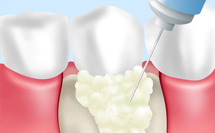 歯周病の進行は、歯石やプラークといった細菌の温床が原因です。表面的に見える汚れだけでなく、歯ぐきの奥深くに隠れた病原菌もしっかり除去することが、歯周病を改善するための大切なポイントです。
