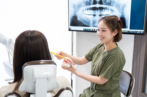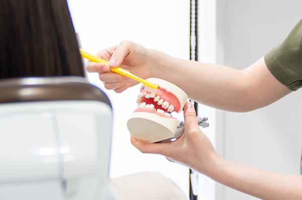染め出しの結果をもとに、歯並びや磨き方の癖に合わせた、より効果的な歯磨き方法を指導します。